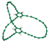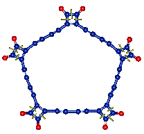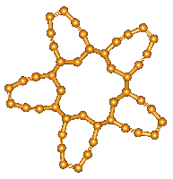 その後Rubinらのグループもベンゼン環を2つ鎖でつないだような分子(下)を合成し、やはりMS中でフラーレンに化けることを観測しています。Rubinらのサイトはこの他にも美しいフラーレン関係のCGがたくさん掲載されていますので、興味のある方はこちらをご覧下さい。