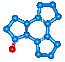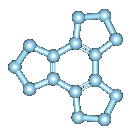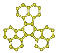 またアメリカのChapmanらも独立にサッカーボール構造に想到し、1981年ごろからその全合成に挑戦しています。彼らは下のような分子にまで到達したのですが残念ながら完成には至らず、Kroto・Smalleyらのフラーレン発見報告(1985)を見て諦めてしまったようです(といっても筆者には、ここからどうすればフラーレンになるのか、ちょっとよくわからないのですが(^^;)。
