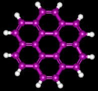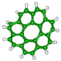 You can make a larger hexagon by connecting six benzene rings. This molecule is called coronene, after the solar corona (Figure 11). It’s a perfectly flat molecule.