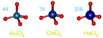 元素といってもこれでは化合物を作るひまさえないではないか、と言われそうですが、驚くべきことに2002年に108番元素ハッシウムの化合物が合成され、化学的性質が調べられています。Dullmann率いるスイスのグループは、加速器中で生成したハッシウムを素早く反応させてその組成を調べ、揮発性の高い四酸化物(HsO4)を作ることを突き止めたのです(Nature 418,859 (2002))。この実験に使われたハッシウムは半減期わずか11秒、しかもわずか7原子でこれを調べたといいますから、まさに驚くべき技術としかいいようがありません。これによってハッシウムは、周期表ですぐ上に当たるオスミウムとよく似た性質を持つことが明らかになりました。