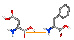 こうして貨物列車のようにずらずらとアミノ酸の鎖が並んだものが、ペプチドあるいはタンパク質ということになります。ちなみに上の化合物のメチルエステルになったものが有名な甘味料アスパルテームで、最も簡単なペプチドの一種ということになります。