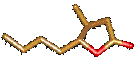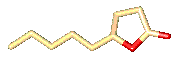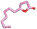 環状のエステルをラクトンと呼び、これらの中にも香料として使われているものが多くあります。下の絵はいずれも5員環ラクトンですが、左から順にココナッツ、桃、ウイスキーと全く異なる香りがします。真ん中ののγ-ウンデカノライドは1919年に発売された有名な香水「ミツコ」の成分の一つです。右のウイスキーラクトンはバーボンやワインにも含まれていますが、意外なことにこれは樫の木でできた樽からしみ出してくる成分です。長期間樽の中で熟成させた酒がうまいというのは、実はこうした理由にもよっているのです。