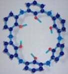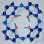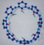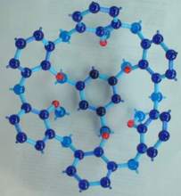 「カリックスアレン」という風変わりな名前の化合物が、近年よく学会誌をにぎわしています。というわけで今回は、この「分子の杯」の化学を取り上げてみましょう。(なお今回からCGだけでなく分子模型による表示も取り入れています。紺色が炭素、赤が酸素、緑が窒素、黄色が硫黄となっています)。
