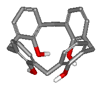 偶然に発見されたこの分子は「足元」の水酸基同士が水素結合し、カップ型の構造をとります。生みの親であるGutsche教授は、この構造に対してギリシャ語の「杯」(calix)という言葉から「カリックスアレン」という名を与えました。