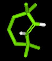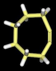 シクロオクチン。本来直線であるべき三重結合は、158°まで曲がっている。