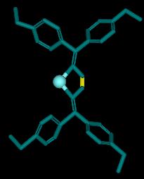 ジルコナシクロペンチン。黄色が三重結合、水色がジルコニウム。