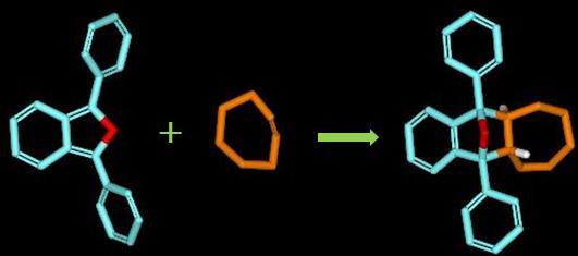 これはいったんtrans体ができ、それがcisに異性化しているのではないか――こう考えたCoreyは、系内で素早く二重結合と反応する試薬を予め加えておくことを考えました。と、見事にtransの付加体が得られ、いったんtrans-シクロヘプテンができていることが実証されました(J. Am. Chem. Soc.; 1965; 87(4); 934-935)。不安定化合物の取り扱い方として、参考になる手法です。