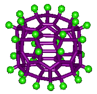 下のような塩素つきサターネンは、中国のチームによって合成されました。これは炭素が60個ではなく50個、C50Cl10という分子式を持ちます。