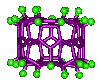 さらに最近(2004年)、フッ素ではなく塩素を30個化合させたフラーレンが同じチームから報告されています。土星型、クラゲ型に続き、今度はドラム型になるそうです。フラーレンはただ丸いだけかと思いきや、次から次へと愉快な変身を見せてくれるものです。
