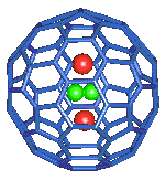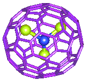 これまでにスカンジウム、ランタン、セシウム、チタンなどを内包したフラーレンが得られていますが、鉄、銅、銀、金、アルミニウムなどでは成功していません。これがなぜなのかは今のところ不明です。内包される原子は金属がほとんどですが、最近窒素を閉じこめたフラーレン(N@C60と表記します)も得られています。