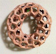 このページをご覧になった平塚工科高校の望月先生から、化学部の生徒さんの卒業作品として、上記のドーナツフラーレンC200の模型を作成したというメールをいただきました。みごとな出来映えですので、先生の許可を得てここに公開させていただきます。どうもありがとうございました。