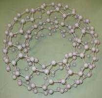 KrotoやSmalleyらによってフラーレンが発見された折、実験条件によってC60以外にもC70,C76,C78,…などが得られることがすでにわかっていました。解析の結果、これらはC60同様5員環と6員環から成る、大型のフラーレン類であることが明らかにされました。ただし、これら高次フラーレン類はC60のような完全な球形ではなく、ラグビーボールのような楕円球です。