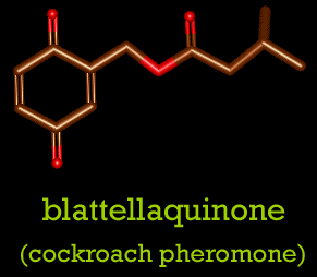化合物はゴキブリの学名(blattella germanica)と、キノン骨格(左方の6員環部分)を含む構造から「ブラッテラキノン(blattellaquinone)と命名されました。キノンを含む化合物を防御物質として使っているゴキブリが他にもいることから、この化合物ももともと防御物質であったものが性フェロモンに転用された可能性があります。