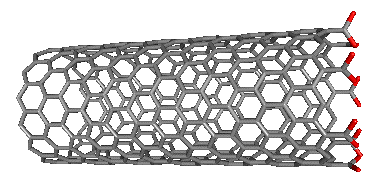 ナノチューブの末端ではなく、側壁にいろいろな分子をくっつける反応も最近になって続々と報告されています。元のナノチューブにはない、面白い機能を持った化学変換ナノチューブが世間を賑わすのもそう遠いことではないでしょう。