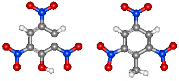 1905年、日本海海戦において日本軍はロシアの誇るバルチック艦隊を粉砕し、東洋の新興の小国が超大国ロシアを破るという奇跡を成し遂げます。このとき日本軍の勝因のひとつとなったのが新兵器「下瀬火薬」で、主成分はフェノールに3つのニトロ基がついた「ピクリン酸」と呼ばれる化合物でした。ただしこの化合物は酸性が強く、砲弾の鉄を溶かしてしまうので、現在はその水酸基をメチル基に置き換えた化合物が用いられます。これが有名な高性能爆薬TNT(2,4,6-トリニトロトルエン)です。