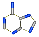 さて最近、「プリン体○%カット」と銘打ったビールや発泡酒を見かけるようになりました。このプリン体とはいったい何で、何ゆえつまはじきにされねばならないのか?まずプリン(purine)そのものは下に示すような、5・6員環がくっついた中に窒素原子(青)4つを含む分子のことで、「プリン体」というのはこの骨格を含む分子を総称していう言葉です。ちなみに食べ物のプリン(pudding)とは何の関係もありません。