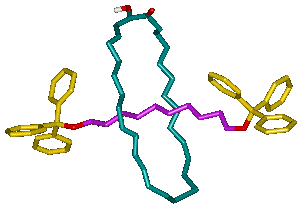 ロタキサン類はこの他にも「分子マシン」の素子として、いろいろと興味深い研究が行われています。これはまた次項で。