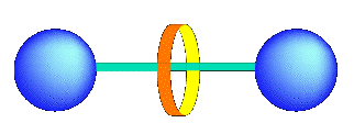 ロタキサンは「2つの分子が、直接つながってはいないが外れもしない」という点でカテナンと共通しています。カテナンは2つの輪がからみ合っていましたが、ロタキサンは輪の中にひも状の分子が通っており、その両端に輪より大きな「ストッパー」がついているためにひもが輪から抜けないという構造です。