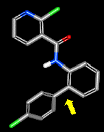 アンジオテンシンII拮抗剤バルサルタン(左)と殺菌剤ボスカリド(右)。